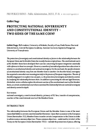 Nagy, Gellért (2025) Protecting National Sovereignty and Constitutional Identity - Two Sides of the Same Coin? PRO PUBLICO BONO: MAGYAR KÖZIGAZGATÁS; A NEMZETI KÖZSZOLGÁLATI EGYETEM KÖZIGAZGATÁS-TUDOMÁNYI SZAKMAI FOLYÓIRATA, 13 (3). pp. 37-51. ISSN 2063-9058