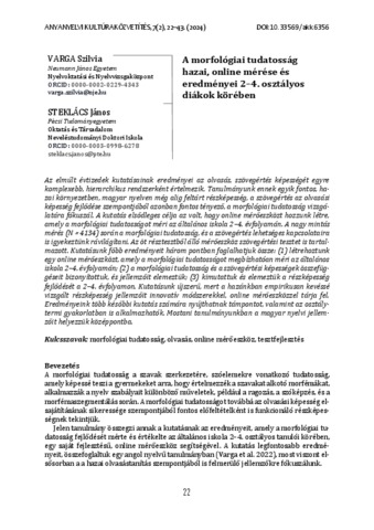 Varga, Szilvia and Steklács, János (2025) A morfológiai tudatosság hazai, online mérése és eredményei 2–4. osztályos diákok körében = Domestic, online measurement and results of morphological awareness among students in grades 2–4. ANYANYELVI KULTÚRAKÖZVETÍTÉS, 7 (2). pp. 22-43. ISSN 2063-2991