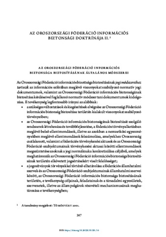 Tömösváry, Zsigmond (2025) Az Oroszországi Föderáció információs biztonsági doktrínája II. In: Globális vagy regionális hatalom Oroszország? Ludovika Egyetemi Kiadó, Budapest, pp. 247-256. ISBN 9789636532055