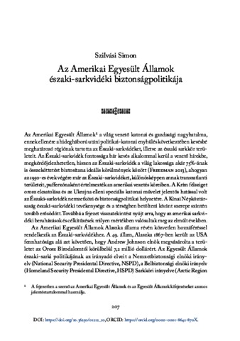 Szilvási, Simon (2025) Az Amerikai Egyesült Államok északi-sarkvidéki biztonságpolitikája. In: Az Északi-sarkvidék változó biztonságpolitikai környezete. Ludovika Egyetemi Kiadó, Budapest, pp. 207-227. ISBN 9789636531201; 9789636531218; 9789636531225