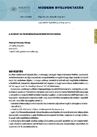 Palotai-Torzsás, Tímea (2025) A Juremy EU terminológiakereső bemutatása. MODERN NYELVOKTATÁS, 31 (3-4). pp. 141-150. ISSN 1219-638X