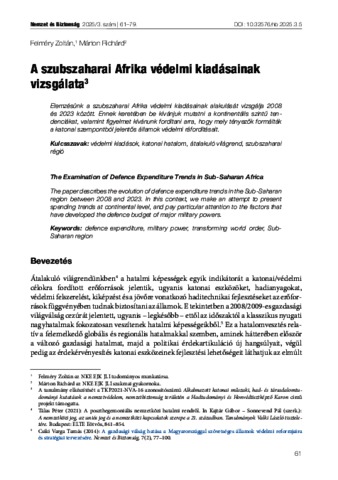 Felméry, Zoltán and Márton, Richárd (2025) A szubszaharai Afrika védelmi kiadásainak vizsgálata = The Examination of Defence Expenditure Trends in Sub-Saharan Africa. NEMZET ÉS BIZTONSÁG: BIZTONSÁGPOLITIKAI SZEMLE, 18 (3). pp. 61-79. ISSN 1789-5286