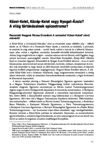 Palócz, Márk (2025) Közel-Kelet, Közép-Kelet vagy Nyugat-Ázsia? A világ történéseinek epicentruma? : Recenzió Nagyné Rózsa Erzsébet A sokszínű Közel-Kelet című művéről. NEMZET ÉS BIZTONSÁG: BIZTONSÁGPOLITIKAI SZEMLE, 18 (3). pp. 141-143. ISSN 1789-5286