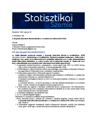 Lakatos, Miklós (2026) A Központi Statisztikai Hivatal működése a szocialista korszakban (1948–1989) = The operation of the Hungarian Central Statistical Office during the socialist era (1948–1989). STATISZTIKAI SZEMLE, 104 (3). pp. 253-282. ISSN 0039-0690