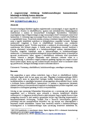 Balogh, Krisztián Zoltán and Hegedűs, Szilárd (2026) A magyarországi vörösiszap biohidrometallurgiai hasznosításának lehetősége és költség-haszon elemzése. In: Szemelvények a BGE kutatásaiból : IV. kötet. Budapesti Gazdaságtudományi Egyetem, Budapest, pp. 5-14. ISBN 9786156886286