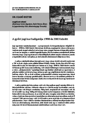 Szabó, Eszter (2025) A győri jogi kar hallgatója 1998 és 2003 között. JOG ÁLLAM POLITIKA: JOG- ÉS POLITIKATUDOMÁNYI FOLYÓIRAT, 17 (KSZ). pp. 179-182. ISSN 2060-4580