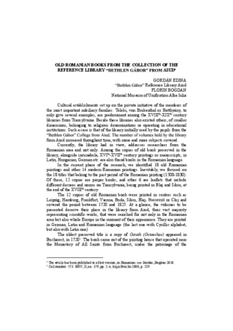 Gordán, Edina and Bogdan, Florin (2020) Old Romanian Books from the Collection of the Reference Library "Bethlen Gábor" from Aiud. APULUM: SERIES HISTORIA AND PATRIMONIUM (ALBA IULIA), 57 (1). pp. 211-218. ISSN 1013-428X