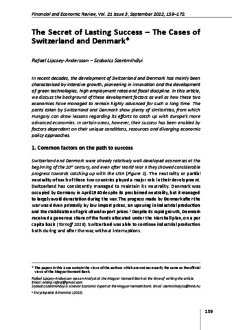 Lipcsey-Andersson, Rafael and Szentmihályi, Szabolcs (2022) The Secret of Lasting Success : The Cases of Switzerland and Denmark. FINANCIAL AND ECONOMIC REVIEW, 21 (3). pp. 159-172. ISSN 2415-9271 (print); 2415-928X (online)
