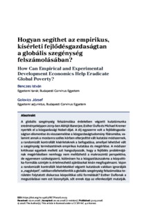 | Uncontrolled Keywords: | randomizált kontrollált kísérletek, fejlődésgazdaságtan, szegénység, randomized controlled trials (RCTs), experimental development economics, global poverty alleviation, evidence-based policy |