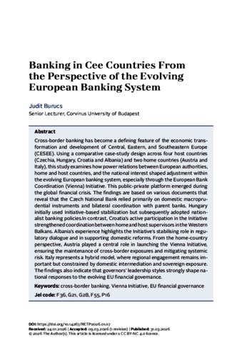 Hadházyné Burucs, Judit (2026) Banking in CEE Countries From the Perspective of the Evolving European Banking System. KÖZ-GAZDASÁG, 21 (1). pp. 158-178. ISSN 1788-0696