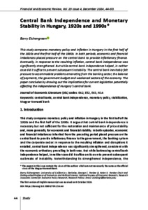 This study compares monetary policy and inflation in Hungary in the first half of the 1920s and the first half of the 1990s. In both periods, economic and financial imbalances placed pressure on the central bank to provide inflationary finance. Eventually, in response to the resulting inflation, central bank independence was significantly strengthened. But while central bank independence helped, in neither case did it suffice to prevent subsequent instability. The central bank inevitably felt pressure to accommodate problems emanating from the banking sector, the balance of payments, the government budget and weakened sectors of the economy. The paper concludes by drawing out the implications for current legislation potentially affecting the independence of Hungary’s central bank.