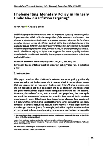 Ábel, István and Pierre, L. Siklos (2024) Implementing Monetary Policy in Hungary Under Flexible Inflation Targeting. FINANCIAL AND ECONOMIC REVIEW, 23 (4). pp. 153-176. ISSN 2415-9271