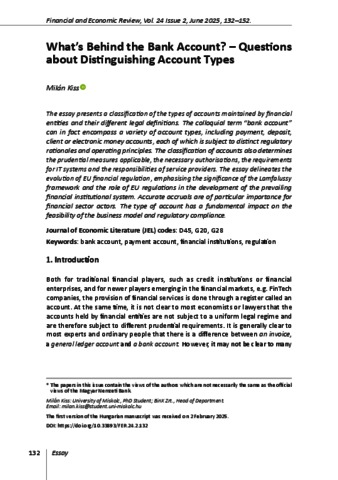 Kiss, Milán (2025) What’s Behind the Bank Account? : Questions about Distinguishing Account Types. FINANCIAL AND ECONOMIC REVIEW, 24 (2). pp. 132-152. ISSN 2415-9271