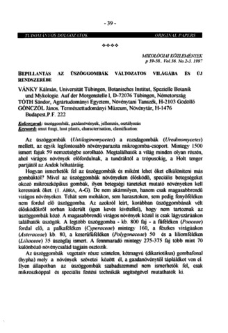 Vánky, Kálmán and Tóth, Sándor and Gönczöl, János (1997) Bepillantás az üszöggombák változatos világába és új rendszerébe. MIKOLÓGIAI KÖZLEMÉNYEK-CLUSIANA, 36 (2-3). pp. 39-58. ISSN 0133-9095