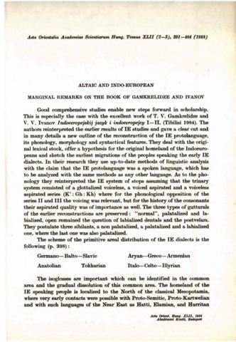 Róna-Tas, András (1988) Altaic and Indo-European. Marginal remarks on the book of Gamkrelidze and Ivanov. ACTA ORIENTALIA ACADEMIAE SCIENTIARUM HUNGARICAE, 42. pp. 391-404. ISSN 0001-6446