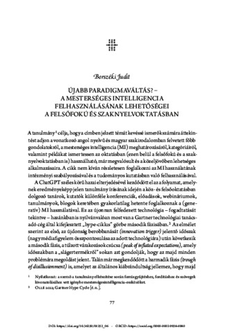 Borszéki, Judit (2025) Újabb paradigmaváltás? : A mesterséges intelligencia felhasználásának lehetőségei a felsőfokú és szaknyelvoktatásban. In: Határkövek. Ludovika Egyetemi Kiadó, Budapest, pp. 77-109. ISBN 9789636531843; 9789636531836