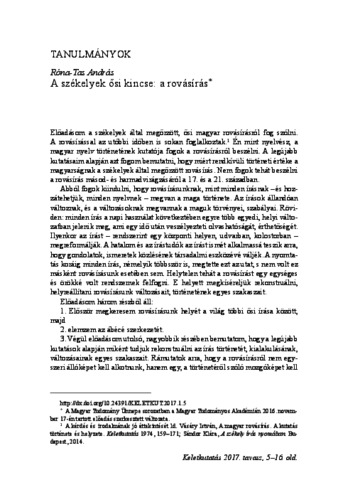 Róna-Tas, András (2017) A székelyek ősi kincse: a rovásírás. KELETKUTATÁS, 1991 (tavasz). pp. 5-16. ISSN 0133-4778
