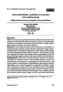 Cél: A tanulmány célja a gyermekek sérelmére elkövetett szexuális bűncselekmények és az elkövetők jellemzőinek bemutatása, valamint a nemzetközi gyermekvédelmi rendszerekben alkalmazott szűrési technikák és hozzájuk kapcsolódó kutatások ismertetése a prevenció érdekében.Módszertan: A tanulmány elsősorban elméleti áttekintésre és szakirodalmi hivatkozásokra épül, amelyeket a szerző a Büntetés-végrehajtás Országos Parancsnoksága Központi Kivizsgáló és Módszertani Intézet szakmai tevékenységkörébe tartozó tapasztalatai alapján értékel és egészít ki. Emellett fontos szerepet kap a hazai gyermekvédelmi pszichológiai alkalmasságvizsgálatok során való hasznosíthatóság vizsgálata, valamint a prevenciós kérdések rövid áttekintése is.Megállapítások: A gyermekek sérelmére elkövetett szexuális bűncselekmények egyéni és társadalmi szinten is jelentős károkat okoznak, csökkentik az intézményekbe vetett bizalmat és a biztonságérzetet. Éppen ezért fontos, hogy a gyermekvédelmi intézményekben foglalkoztatottak pszichológiai alkalmasságvizsgálata során mindent megtegyünk a megelőzésük érdekében. Ugyanakkor a tudomány mai állása szerint nem rendelkezünk olyan szűrőeszközzel, mely megbízhatóan (előre)jelzi a gyermekek sérelmére elkövetett szexuális bűncselekmények bekövetkezésének valószínűségét. Sajnos a legtöbb szexuális bűncselekmény inkább szituatív jellegű, semmint a pszichiátriai pedofil zavar diagnózishoz köthető, ami megnehezíti a prevenciót. Ugyanakkor számos olyan személyiségjellemző (például kognitív torzítások, kötődési problémák, empátiás készség hiánya stb.) vizsgálatára van lehetőségünk, mely ezekben a bűncselekményekben kiemelt súllyal játszanak szerepet, így az alkalmasságvizsgálat fókuszában kell tartani azokat.Érték: A tanulmány hozzájárul a gyermekvédelmi intézményekben foglalkoztatottak pszichológiai alkalmasságvizsgálatának módszertanához, szempontokat ad a vizsgálati irányokhoz, felhívja a figyelmet a kockázatos személyiségjellemzőkre. Megfogalmazza a prevenció fontosságát és lehetőségeit a gyermekvédelemben, és aláhúzza annak jelentőségét, hogy a pszichológiai alkalmasságvizsgálat csak egy, de közel sem kizárólagos állomás a gyermekek szexuális bűncselekmények áldozatává válásának megelőzésében. | Aim: The aim of this study is to present the characteristics of sexual offences committed against minors and the traits of the perpetrators, as well as to review screening techniques applied in international child protection systems, including related research focusing on prevention. Methodology: The study is primarily based on a theoretical overview and literature review, supplemented by insights derived from the professional activities of the Central Assessment and Methodological Institute of the Hungarian Prison Service Headquarters. Particular emphasis is placed on examining the applicability of these findings in the context of psychological aptitude assessments in child protection services, as well as on briefly outlining key issues related to prevention. Findings: Sexual offences against minors cause significant harm both at individual and societal levels by eroding trust in institutions and diminishing the overall sense of safety. Therefore, it is crucial that psychological aptitude assessments in child protection settings incorporate all possible preventive considerations. However, current scientific knowledge does not yet provide screening tools capable of reliably predicting the likelihood of such offences. Most sexual offences are situational rather than directly associated with a pedophilic disorder, which complicates prevention efforts. Nevertheless, several personality traits—such as cognitive distortions, attachment problems, and lack of empathy—can be examined, as they play a key role in such crimes and should remain central to aptitude assessments. Value: The study contributes to the methodology of psychological aptitude assessments used in child protection services, offers perspectives for assessment directions, and draws attention to high-risk personality traits. It highlights the importance and opportunities of prevention and emphasizes that psychological aptitude assessment is only one, though not exclusive, component in preventing children from becoming victims of sexual offences.