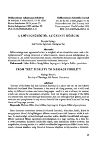 Biblia szövege nem egyszerre hullott le az égből, sőt az olvasókhoz nem csak a „kinyilatkoztatott” szöveg juttatta el a vallási üzenetet, hanem annak átdolgozásai, parafrázisai is. Az alábbi tanulmányban ennek a történelmi folyamatnak legfontosabb állomásait és dokumentumait szeretnék vázlatosan bemutatni. | The text of the Bible did not fall from heaven all at once: the text of the Hebrew Bible and the Greek New Testament is the result of a long process, and is still used today in different versions and many languages - and it is not at all easy to answer, which text should be considered authentic. And the religious message of the Bible was transmitted not only through translations, but also through other genres, such as revisions and paraphrases. In my lecture I would like to give a brief sketch of this long historical language process.