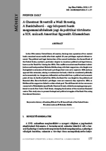 In the 19th century United States of America, the long-term operation of two central banks remained unsuccessful after their explicit 20-year privileges expired without renewal. The political and legal destruction of the second institution, the Second Bank of the United States, marked a particular chapter in American political and legal history, known as the ‘Bank War’ during the 1830s. This conflict arose between President Andrew Jackson and bank president Nicholas Biddle, along with their supporters, who fought over the legislative extension of the bank’s privileges that were set to expire in 1836. Jackson opposed this extension, aiming to undermine the bank, which he considered politically and economically too dangerous, influential, and harmful from a political and economic point of view. In the first half of the 1830s, the Bank War was fought by the political and financial elite. Since the Bank’s privileges were not renewed, they expired in 1836, so Biddle and his supporters failed to achieve their goal. The old financial circles were more connected to Philadelphia (specifically Chestnut Street), while the emerging groups gravitated towards New York’s Wall Street, changing the location of the American financial centre. This study aims to present the legal and political struggles of the Bank War, using the relevant literature