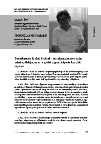 Szoboszlai-Kiss, Katalin (2025) Beszélgetés Szalai Évával : Az oktatásszervezés mintapéldája, azaz a győri jogászképzés kezdeti lépései. JOG ÁLLAM POLITIKA: JOG- ÉS POLITIKATUDOMÁNYI FOLYÓIRAT, 17. pp. 57-64. ISSN 2060-4580