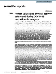 Csurilla, Gergely and Fertő, Imre and Benedek, Zsófia and Fogarasi, József and Bakucs, Lajos Zoltán (2026) Human values and physical activity before and during COVID-19 restrictions in Hungary. SCIENTIFIC REPORTS, 16. No. 11463. ISSN 2045-2322
