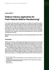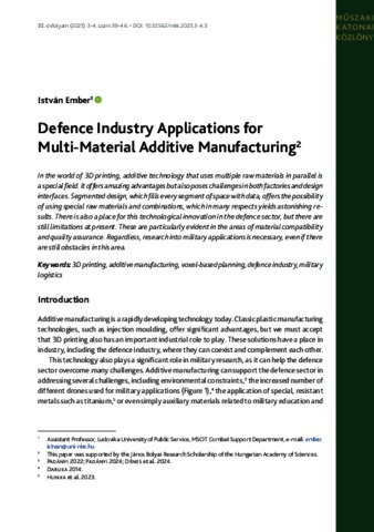 Ember, István (2025) Defence Industry Applications for Multi-Material Additive Manufacturing. MŰSZAKI KATONAI KÖZLÖNY, 35 (3-4). pp. 39-46. ISSN 1219-4166