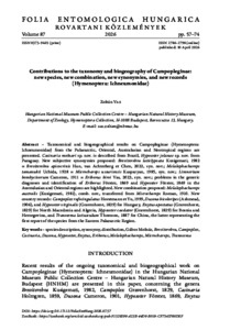 Vas, Zoltán (2026) Contributions to the taxonomy and biogeography of Campopleginae: new species, new combination, new synonymies, and new records (Hymenoptera: Ichneumonidae). FOLIA ENTOMOLOGICA HUNGARICA, 87. pp. 57-74. ISSN 0373-9465