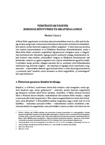 Benke, László (2022) Történeti bevezetés Jeremiás könyvéhez és Siratódalaihoz. STUDIA BIBLICA - BIBLIAI TANULMÁNYOK, 4 (2). pp. 7-16. ISSN 2676-9166