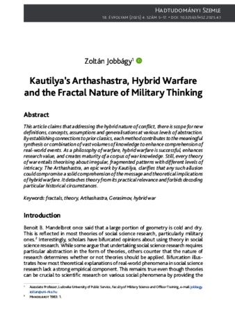 Jobbágy, Zoltán (2025) Kautilya’s Arthashastra, Hybrid Warfare and the Fractal Nature of Military Thinking. HADTUDOMÁNYI SZEMLE, 18 (4). pp. 5-17. ISSN 2676-9816