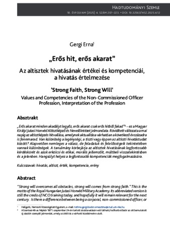 Gergi, Erna (2025) „Erős hit, erős akarat” : Az altisztek hivatásának értékei és kompetenciái, a hivatás értelmezése. HADTUDOMÁNYI SZEMLE, 18 (4). pp. 207-223. ISSN 2676-9816
