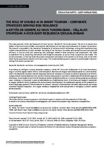 Katits, Etelka and Fejes, Judit Katalin (2026) The role of double AI in smart tourism – Corporate strategies serving risk resilience. VEZETÉSTUDOMÁNY, 57 (4). pp. 2-15. ISSN 0133-0179