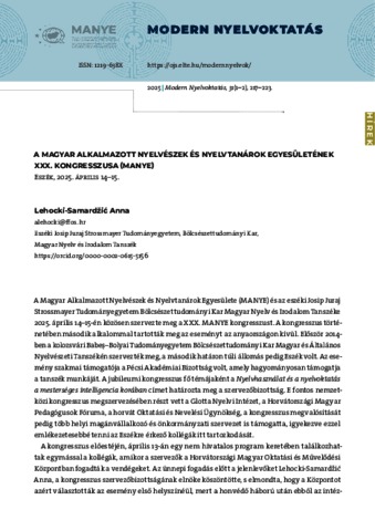 Lehocki-Samardžić, Anna (2025) A Magyar Alkalmazott Nyelvészek és Nyelvtanárok Egyesületének XXX. kongresszusa (MANYE) : Eszék, 2025. április 14–15. MODERN NYELVOKTATÁS, 31 (1-2). pp. 217-223. ISSN 1219-638X