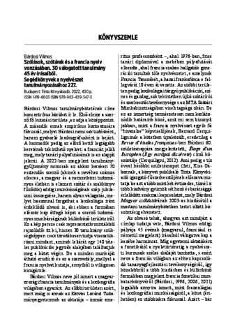 Bárdosi Vilmos: Szólások, szótárak és a francia nyelv vonzásában. 30 válogatott tanulmány 45 év írásaiból. Segédkönyvek a nyelvészet tanulmányozásához 227. Budapest: Tinta Könyvkiadó, 2022.