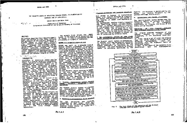 Bolla, Kálmán and Kiss, Gábor (1987) The phonetic basis of artificial Russian speech, its generation by computer and its application. In: 11th International Congress of Phonetic Sciences, ICPhS 1987, 1987.08.01-1987.08.07, Tallinn.