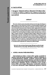 M. Takács, Péter (2025) A magyar demokratikus átmenet értelmezése: A rendszerváltás politikai és politikatudományi narratívái. JOG ÁLLAM POLITIKA: JOG- ÉS POLITIKATUDOMÁNYI FOLYÓIRAT, 17 (2). pp. 147-158. ISSN 2060-4580