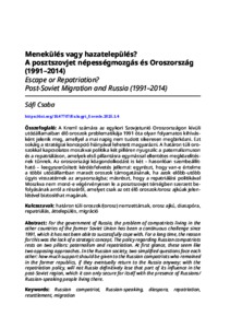 Uncontrolled Keywords: határon túli oroszok/(orosz) nemzettársak, orosz ajkú, diaszpóra, repatriálás, áttelepülés, migráció | Russian compatriot, Russian-speaking, diaspora, repatriation, resettlement, migration