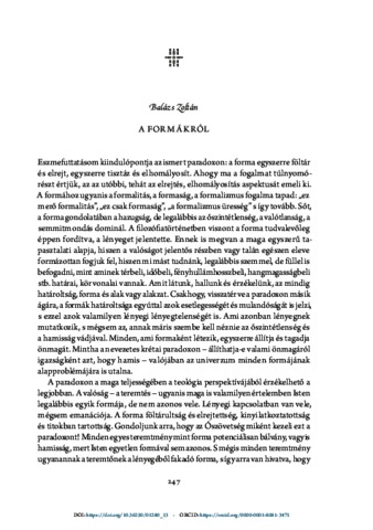 Balázs, Zoltán (2026) A formákról. In: A polgárság erénye és bölcsessége. Ludovika Egyetemi Kiadó, Budapest, pp. 247-254. ISBN 9789636532024; 9789636532031