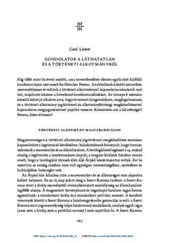 Csink, Lóránt (2026) Gondolatok a láthatatlan és a történeti alkotmányról. In: A polgárság erénye és bölcsessége. Ludovika Egyetemi Kiadó, Budapest, pp. 265-273. ISBN 9789636532024; 9789636532031