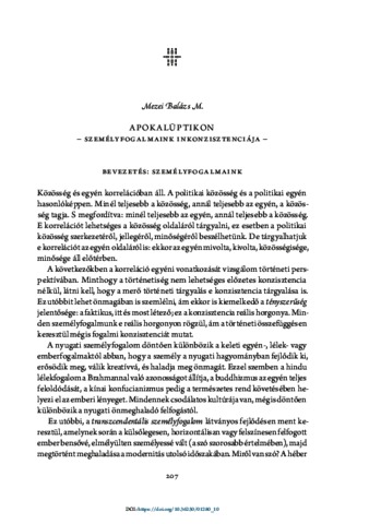 Mezei, Balázs M. (2026) Apokalüptikon : Személyfogalmaink inkonzisztenciája. In: A polgárság erénye és bölcsessége. Ludovika Egyetemi Kiadó, Budapest, pp. 207-217. ISBN 9789636532024; 9789636532031