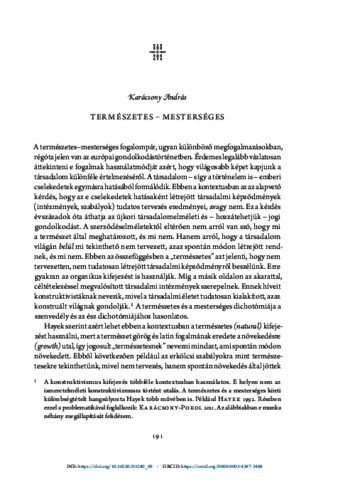 Karácsony, András (2026) Természetes – mesterséges. In: A polgárság erénye és bölcsessége. Ludovika Egyetemi Kiadó, Budapest, pp. 191-206. ISBN 9789636532024; 9789636532031