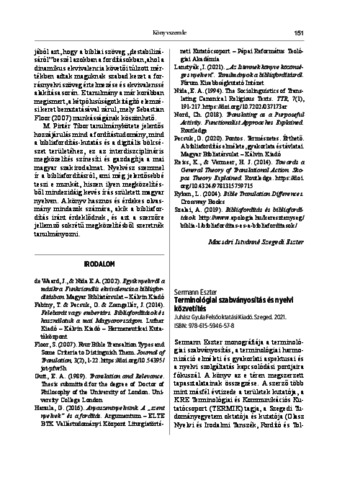 Tamás, Dóra Mária (2024) Sermann Eszter: Terminológiai szabványosítás és nyelvi közvetítés. MODERN NYELVOKTATÁS, 30 (3-4). pp. 151-154. ISSN 1219-638X