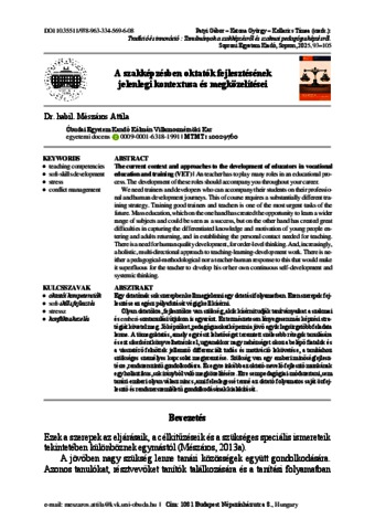 Mészáros, Attila (2025) A szakképzésben oktatók fejlesztésének jelenlegi kontextusa és megközelítései = The current context and approaches to the development of educators in vocational education and training (VET). In: TRADÍCIÓ ÉS INNOVÁCIÓ. Soproni Egyetem Kiadó, Sopron, pp. 93-105. ISBN 9789633345696