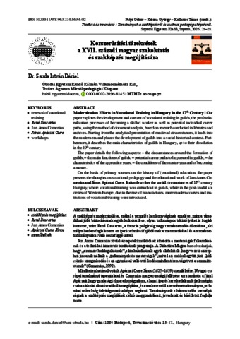 Sanda, István Dániel (2025) Korszerűsítési törekvések a XVII. századi magyar szakoktatás és szakképzés megújítására = Modernization Efforts in Vocational Training in Hungary in the 17th Century. In: TRADÍCIÓ ÉS INNOVÁCIÓ. Soproni Egyetem Kiadó, Sopron, pp. 21-28. ISBN 9789633345696
