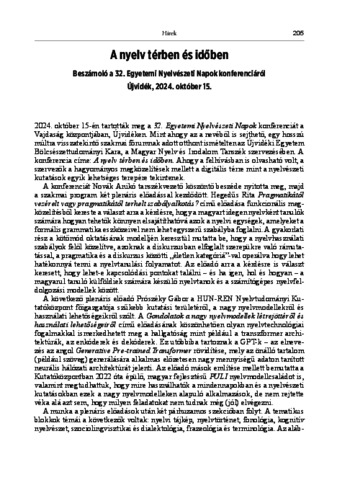 Oszkó, Beatrix (2024) A nyelv térben és időben. Beszámoló a 32. Egyetemi Nyelvészeti Napok konferenciáról. Újvidék, 2024. október 15. MODERN NYELVOKTATÁS, 30 (3-4). pp. 205-207. ISSN 1219-638X