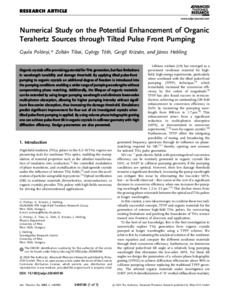 Polónyi, Gyula and Tibai, Zoltán and Tóth, György and Krizsán, Gergő and Hebling, János (2025) Numerical Study on the Potential Enhancement of Organic Terahertz Sources through Tilted Pulse Front Pumping. Advanced Photonics Research, 6 (6). No. -2400180. ISSN 2699-9293