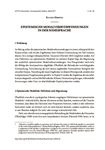 Horváth, Katalin (2026) Epistemische Modalverbverwendungen in der Nähesprache. ACTA UNIVERSITATIS DE CAROLO ESZTERHÁZY NOMINATAE : GERMANISTISCHE STUDIEN, 14. pp. 43-56. ISSN 2630-9513