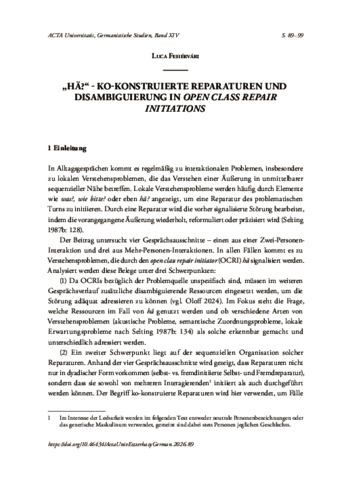 Fehérvári, Luca (2026) „Hä?“ : ko-konstruierte Reparaturen und Disambiguierung in open class repair initiations. ACTA UNIVERSITATIS DE CAROLO ESZTERHÁZY NOMINATAE : GERMANISTISCHE STUDIEN, 14. pp. 89-99. ISSN 2630-9513