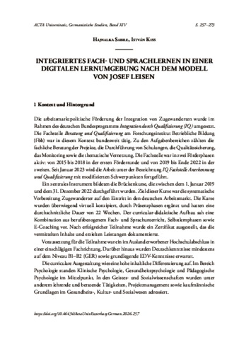 Sabile, Hajnalka and Kiss, István (2026) Integriertes Fach- und Sprachlernen in einer digitalen Lernumgebung nach dem Modell von Josef Leisen. ACTA UNIVERSITATIS DE CAROLO ESZTERHÁZY NOMINATE: GERMANISTISCHE STUDIEN, 14. pp. 257-273. ISSN 26309513