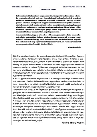 Bokrosné Zlatzky, Nikoletta (2026) HR-folyamatok optimalizálása mesterséges intelligencia segítségével. ÚJ MUNKAÜGYI SZEMLE, 7 (1). pp. 42-55. ISSN 2677-1306